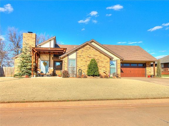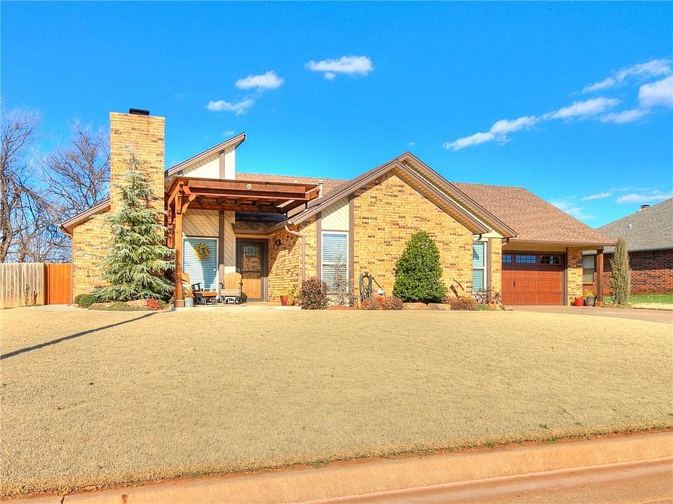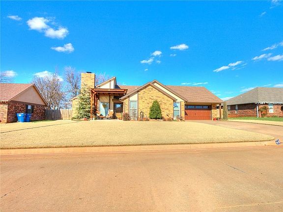 Just beautiful!! This home has been recently updated and is simply stunning. Nestled at the end of a cul-de-sac. This 3 bed 2 bath home has wonderful curb appeal. Pergola patios installed in 2020 at both the front and back of the home. Living room with vaulted ceiling, fireplace with insert which comfortably heats the space on the coldest winter nights. Granite countertops in kitchen & updated backsplash. Stainless steel appliances new in 2021. Wood look tile throughout the home installed in 2019. Updated bathrooms. Step out the backdoor you'll enjoy the wide open space with unobstructed views, feels like country living! Back yard pergola offers a TV enclosure to protect your electronics from the harsh Oklahoma elements. Sliding pergola patio doors provide privacy when desired or leave open to enjoy the space. Homes like this don't hit the market often so don't delay!