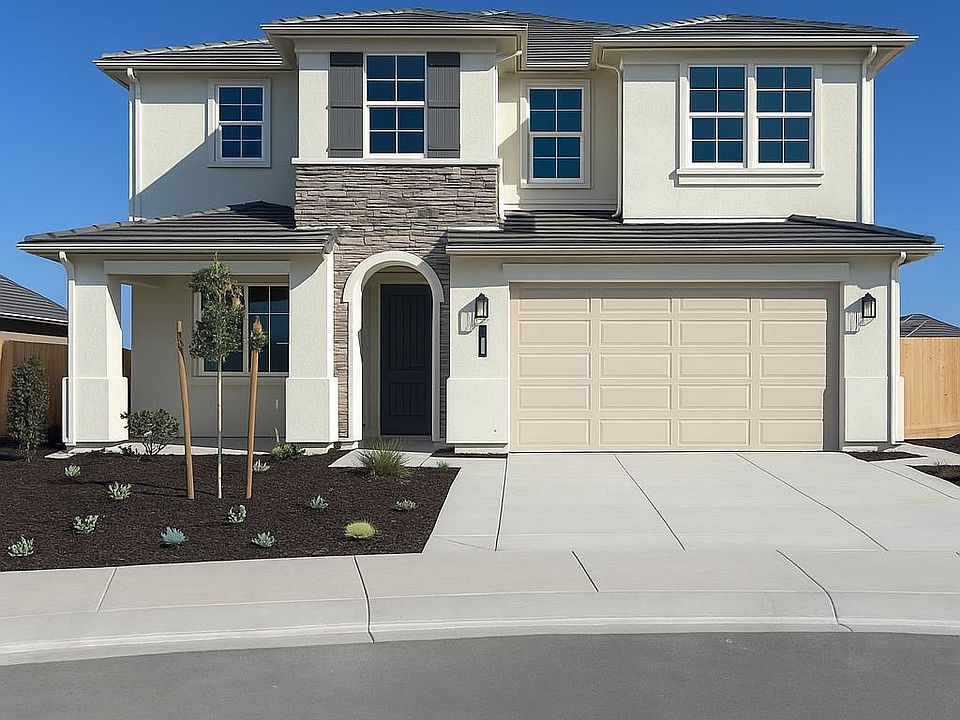 This stunning two-story home features a spacious great room, a downstairs bedroom with full bath, and ample storage throughout. The gourmet kitchen is a dream, showcasing white quartz countertops, an upgraded gloss backsplash, custom stained shaker cabinetry in the color Vintage, stainless steel appliances, and a large pantry. A custom wood stair rail leads to a versatile loft, perfect for a game room, office, or media space. Upstairs, the spacious guest bedrooms offer remarkable views of the countryside or community below, while bathrooms feature engineered marble vanities and surrounds for timeless style. Enjoy sweeping views from the upstairs primary suite, complete with a private retreat, oversized walk-in closet with built-in organizers, and a spa-inspired bathroom with dual vanities, separate shower, and a luxurious Kohler soaking tub. Additional features include textured & painted 2-car garage, drought-tolerant landscaping, Ecobee Smart Thermostat & Ring doorbell, and more! This home blends luxury, comfort, and convenience!