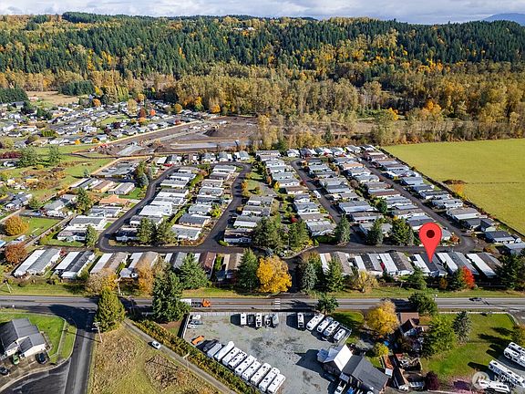 Welcome to this home in Mountain View Estates, a wonderful 55+ community in Orting! Featuring 2 bedrooms, 2 baths and a den, this fantastic home offers comfort and convenience throughout. Enjoy vaulted ceilings, a large primary suite with an updated walk-in shower, and a bright kitchen with white cabinets and stainless appliances. The home features a fairly new heat pump and exterior paint (approx. 5-6 yrs), covered front deck, private backyard, and a carport with parking for two plus a shed/workshop to tinker in. Ramp access from the carport provides easy entry. Community backs up to the Foothills Trail . . . easy access for walking or biking . . . enjoy the beauty of this wonderful area. Safeway, restaurants and more nearby. Check it out!