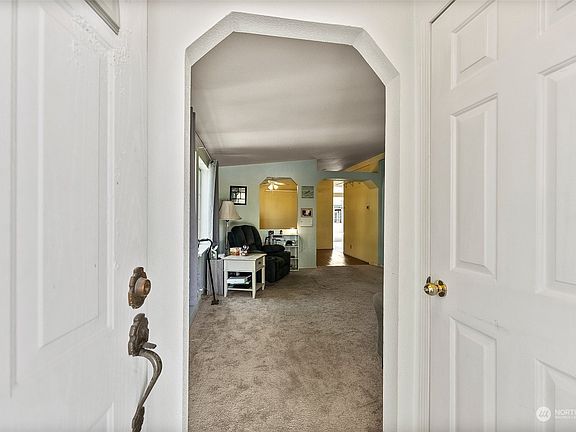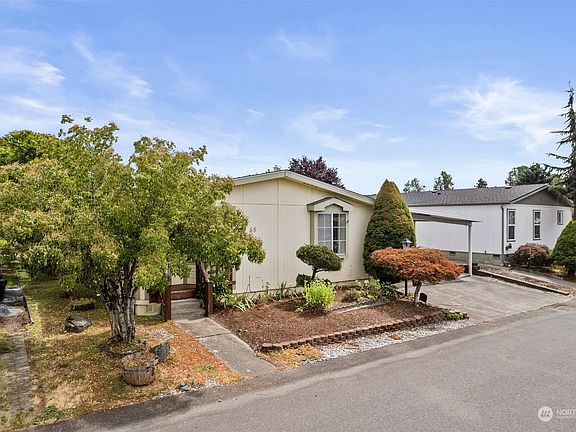 Great home in the 55+ community of Mountain View Estates! Brand new roof and furnace! Spacious floorplan with tons of natural light throughout. Living room that flows into the formal dining room. The kitchen is at the center of the home with plenty of storage. Family room with tons of windows and wood burning stove to keep cozy. Primary bedroom on one side of the home for extra privacy & features sitting area/office space, walk-in closet and bathroom with new vinyl plank floors and shower. 2 other bedrooms and full bath on the other side of home. Huge carport for parking, large storage shed & AC. Back deck to enjoy morning coffee & beautiful Mt Rainier views. Awesome opportunity!