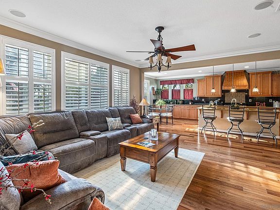 Welcome to this gated community in Rolling Hills Ranch, meticulously maintained 4 bed w/loft or optional 5th bedroom, 3 full baths and a half bath, first time on the market home designed for the discerning buyer. An owned solar system maximizes energy efficiency. Nestled on a premium corner lot with meticulously landscaped grounds. Step inside to experience elegance at every turn. The grand entrance welcomes you with a sweeping staircase leading to the second floor. Entertain guests in the formal living and dining rooms, or indulge in culinary delights prepared in the chef's dream kitchen. Featuring stainless steel appliances, abundant cabinetry, granite countertops, double ovens, and a gas cooktop, this kitchen is a masterpiece of both style and functionality. Relax in the cozy ambiance of the living room, complete with a custom entertainment system that extends throughout the house. One bedroom and full bathroom on the main level helps make guests feel welcome. Upstairs, the spacious primary bedroom includes a retreat area and a walk-in closet, offering a private sanctuary within the home. A generously sized loft presents endless possibilities as a game room or entertainment hub. An attached 3 car garage with finished epoxy floors. Outside, the sprawling backyard beckons with stamped concrete patio, a raised fire pit, and a built-in BBQ area perfect for outdoor gatherings. Unwind in the hot tub while soaking in the panoramic views that stretch beyond the horizon. Impeccably maintained and barely lived in, this home is a rare find.