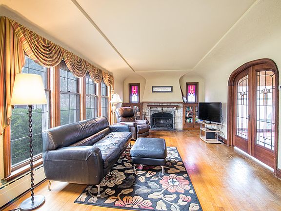 Great space and so much charm! There's a lot to love in this brick tudor: great south exposure sunlight, natural woodwork, stained glass, french doors, fireplace, hardwood floors, formal dining room with patio access, fenced-in back yard, 2 car garage, sweeping staircase, and welcoming foyer! Four bedrooms plus 3rd floor bonus room (great for exercise or family room) and two additional rooms in the lower level offer space for everyone! Add your touches to make this great house your home!