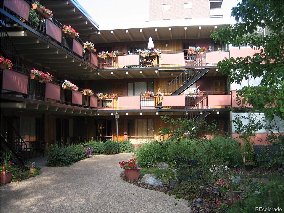 VIRTUAL TOUR AVAILABLE!! Move in Ready 1 Bed/1 Bath condo located on the first floor. Courtyard walk-in filled with trees, shrubs and beautiful flowers. Updates include new flooring, and completely renovated bathroom. Common area includes laundry room that is free to use and also houses your own storage unit. Reserved parking behind the building is available in one of 11 first-come, first-served spaces; owners have priority. Permit street parking is available as well. Close to Cherry Creek Mall, a variety of restaurants, City/Congress Park and The Denver Zoo. Walking distance to Rose Medical Center, Trader Joes, Starbucks, and Snooze. Minutes from downtown! Back on the market due to Buyer Financing issues.