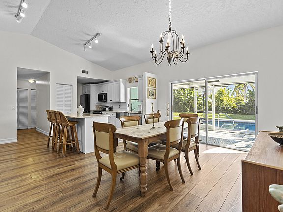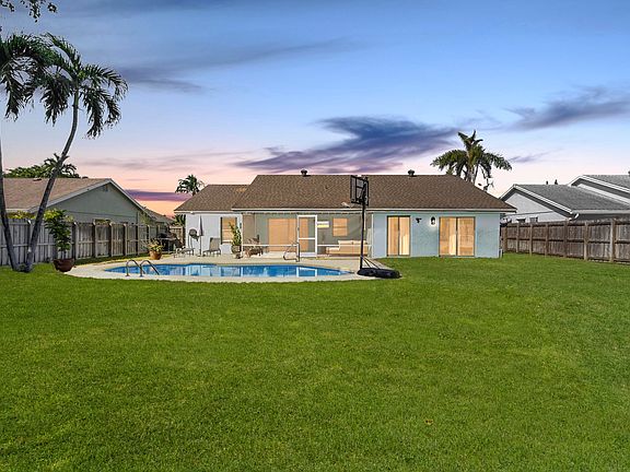 This 4 bedroom, 2 bathroom pool home sits on an oversized 9,425 sq ft fenced lot in the Sky Lake community. Inside, you'll find a split layout, vaulted ceilings, vinyl plank flooring in the living area and primary bedroom, and an upgraded island kitchen with stainless steel appliances. The screened patio leads to a private pool and a large backyard that's great for pets or entertaining. Partial impact windows and a hurricane-rated garage door add peace of mind. Low monthly HOA with a park, basketball, tennis, and pickleball courts.