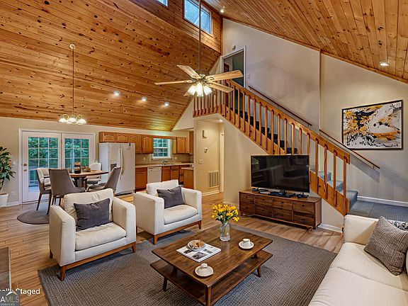 Ideally situated less than two miles from downtown Blairsville and in close proximity to Union General Hospital, this thoughtfully designed home offers an open, light-filled floor plan with soaring cathedral ceilings and a striking stone fireplace in the main living area. Bedroom suites with full baths are located on both the main and upper levels, providing comfort and flexibility. The full, partially finished basement-stubbed for a bath-presents an opportunity for additional living space or a third bedroom. With an attached garage, abundant storage across all levels, updated roof and HVAC, low-maintenance vinyl siding, and access to high-speed fiber internet, this home blends convenience, space, and modern efficiency.