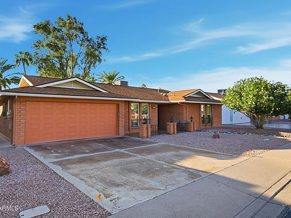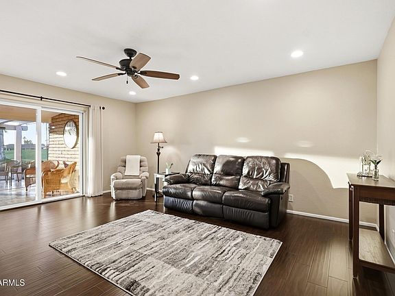 Located in Sunland Village, a golf community in East Mesa, this fully furnished 900 model sits on the 10th fairway with stunning golf course views. The home offers 3 bedrooms, 2 baths, a 2-car garage, and a separate golf cart room. Features include no popcorn ceilings, dual pane windows, water filtration and softener, HVAC approx. 7 years old, water heater approx. 5 years old, and roof approx. 8 years old. Enjoy beautiful sunsets from your covered patio overlooking the course. The community offers pickleball and tennis courts, pools, spas, a billiard room, clubs, and activities for all!