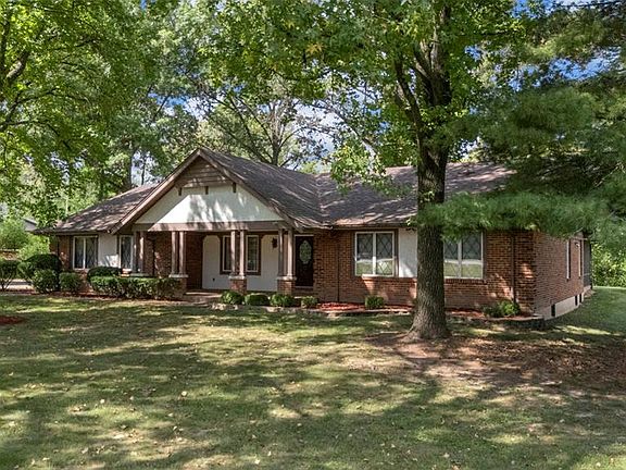 Calling all woodworkers, hobbyists, or business owners dreaming of running a business from home—this is the opportunity you've been waiting for. Tucked away on over 4 pristine acres in the heart of St. Peters, this custom-built brick estate offers unmatched privacy, incredible potential, and a rare setup that includes an enormous finished workshop complete with its own paneled office, half bath, heating, cooling, and garage bay. Whether you're building, crafting, or creating, this is the ultimate space to bring your vision to life—plus there’s an additional detached 2-car garage perfect for storing trailers, tools, or equipment. Built in the 1980s by the original owner—a skilled custom homebuilder—this 3,426 sq ft home has timeless quality and thoughtful design throughout. A long aggregate driveway leads you far off the road to a beautifully landscaped sanctuary, surrounded by mature trees and wide-open views. Inside, you’ll find 3 bedrooms, 3 full baths, and a half bath, along with custom wood finishes, grand double-door entry, and a warm living room with wood beam ceilings and a stunning floor-to-ceiling stone fireplace. The kitchen blends vintage charm with function: oak cabinetry, Jenn-Air cooktop, in-wall double ovens, breakfast bar, and newer dishwasher. A bay window in the breakfast room looks out over the backyard, and the screened-in patio with tongue-and-groove ceiling offers a peaceful place to relax. The spacious primary suite features a walk-in closet, private patio access, and a bath with step-up soaking tub and separate shower. Downstairs, enjoy nearly 1,300 sq ft of finished living space including a large family room with fireplace, rec room with wet bar, craft room, and tons of storage. This property is a true sanctuary for those who want land, privacy, workspace, and a home with heart—all in a prime location close to everything.