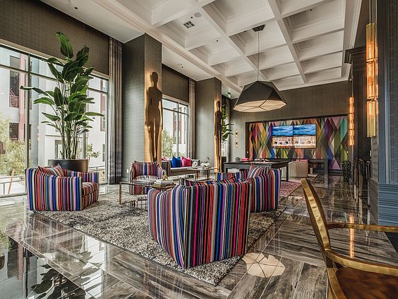 - Exterior features: Barbecue, Business Center, Coat Closets, Full Cardio & Strength Training Facility, Game Room, Glass / Full Size Showers *, Highly Social Lifestyle, Massage Room, Minimum 9 Foot Ceilings, Over-Sized Tub, Pet-Friendly Community, Private Poolside Cabanas, Quartz Countertops & Full Height Backsplash, Resident Lobby, Seating Areas w/ Fire Pits & 75' TVs, Sprinkler System, Stainless Steel Appliances, State-of-the-Art LED Lighting, Storage Spaces Available, TV Lounge, Tanning Room, Volleyball Court
