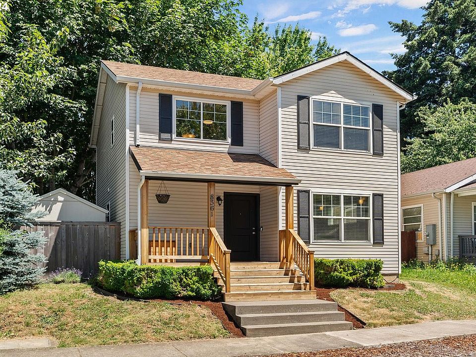 Wonderful move in ready St Johns home, just a short distance from the coveted Pier Park and downtown St Johns restaurants and shops. Many updates throughout include luxury vinyl plank flooring on main level, interior paint, new water heater, closet doors, gutters & more. Rebuilt front deck opens to nice entry area that flows into the living room with gas fireplace. Then move into the spacious dining area that's great for entertaining and has access to the backyard. Efficient kitchen layout with newer stainless steel appliances and butcher block counter top. Main level half bath is shared with laundry closet. Upper level consists of all three bedrooms and full bathroom. Spacious backyard with rebuilt deck, large storage shed, nice shade and new driveway gate from alley entry. All appliances stay! [Home Energy Score = 7. HES Report at https://rpt.greenbuildingregistry.com/hes/OR10144003]