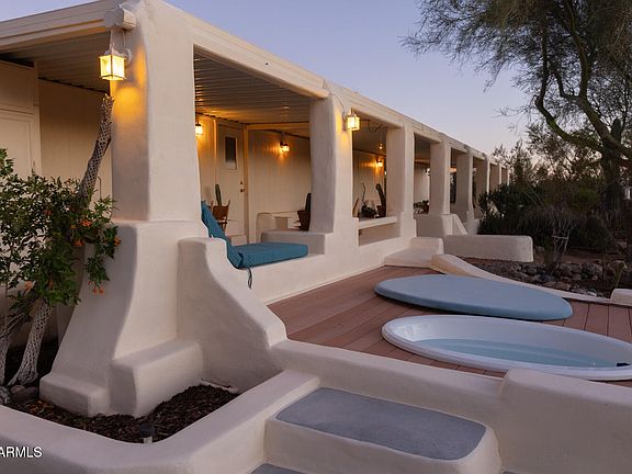 Spacious garagePeaceful natural desert settingThree carportsAmple counter areasPergola swingSunken soaking tubNewly renovated cabinets