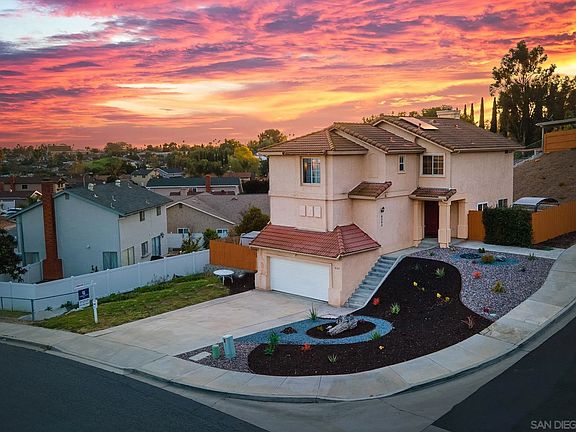 Amazing Newer Construction 5 bedroom plus office, 3 bathroom Mediterranean detached home. Panoramic Views from most every room. over 2300 Estimated Square feet on a nearly quarter-acre Corner lot. Located on a peaceful cul-de-sac in a secluded enclave of Lemon Grove. This split-level floorplan is open and airy with room to grow. The main level offers formal living room, family room (currently being used as a 5th bedroom), full bath, laundry room, office/den (with closet), newly renovated kitchen. Dining area with access to the huge yard that offers open patio, yard, garden area & side BBQ Grill-Zebo. The upper-level has the primary bedroom retreat with his and her walk-in closets, vaulted ceilings, a deep soaking tub and great views and a private balcony. The other 3 bedrooms, the larger of the three bedrooms has direct access to the main hall bathroom, creating an optional second master suite. Two car attached garage has direct access. 22 solar panels, mean low utility bills. (15 owned and 7 leased) The exterior entry from Jadam Way side is level with no stairs. Oversized lot is a rare find and offers potential RV / Boat Parking.
