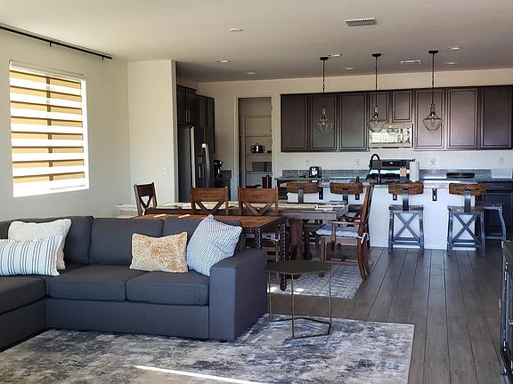 Your new home away from home for a relaxing or action packed vacation. Great home in Estrella Mountain Ranch in Goodyear. Nice open floor plan, covered patio with a no maintenance backyard Appliances including washer and dryer & refrigerator. AMENITIES...2 Lakes, Waterpark, Pools, Boating, Fishing, Hiking, Golf, Tennis, Fitness Centers, Sports Courts, Pickle Ball Courts, 2 Amazing Residents Clubs. Utilities included, water, electric, gas, & internet. There is a cap of $150 per month on electric. Just pack your suitcase and you are ready to start enjoying the good life.