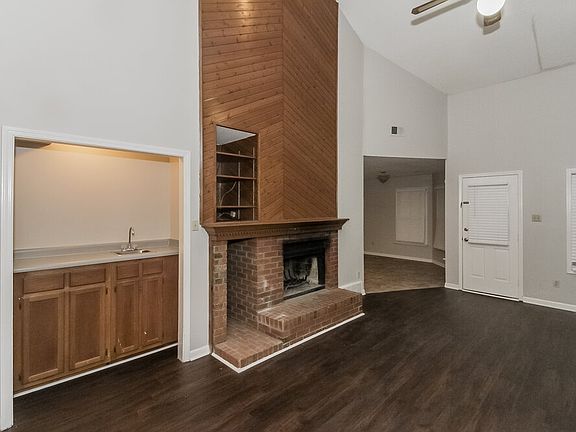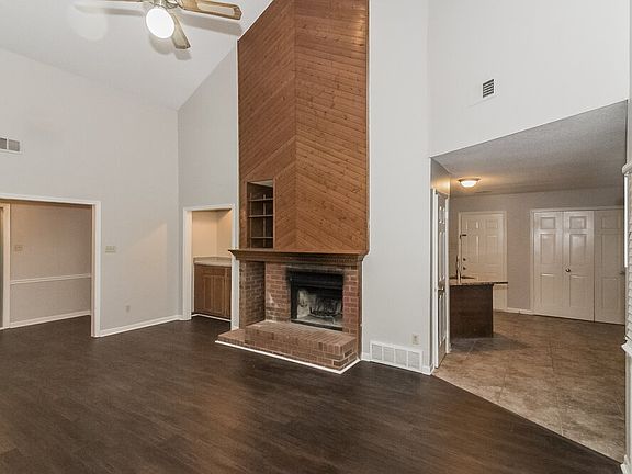 If you need abundant space, come see this 2,418-square-foot, three-bedroom, two-bathroom rental home in Cordova, TN. The stunning living room has a high ceiling, a wet bar that's great for coffee and other beverages, backyard access, and a dramatic accent wall with a fireplace. In the modern kitchen, you'll find ample cabinets, gorgeous counters, an over-the-range microwave, and a French door refrigerator. The main bedroom suite also has a private entrance to the fenced backyard, along with a walk-in closet and a massive en suite bathroom with two separated vanities, and a walk-in shower. Contact us soon to schedule your tour.