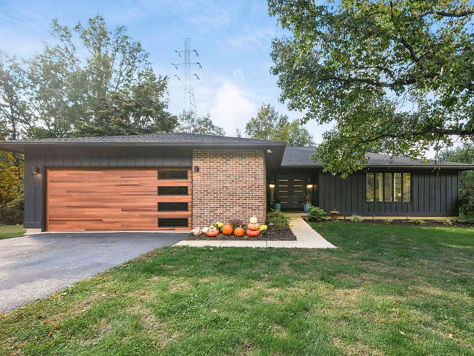 Outstanding water view/access 3 BR, 2.5 BA home on Hoover Reservoir with stunning views from nearly every room. This home lives and feels like a mid-century modern retreat, with clean lines, open spaces, and a seamless connection to the outdoors. Nestled on a quiet street among executive homes on the east side of the reservoir and just a short walk to the Hoover Sailing Club, it offers indoor and outdoor patios, expansive lawn, and wooded surroundings. Over 1,500 sq ft of basement space with two exterior entrances offers excellent potential—finish as an accessory dwelling unit, in-law suite, or guest space. Property includes water access for launching a canoe or kayak, perfect for outdoor enthusiasts. Updates include new roof, baths, paint, exterior garage and entry doors and shed (2024), remodeled kitchen and hardwood floors (2022), updated electric panel (2023), and sealed driveway (2025). Includes three refrigerators, washer, and dryer. Built to capture the water views—this home is a must see!