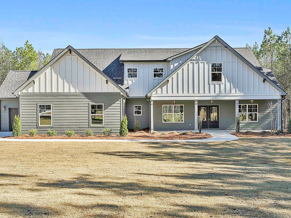 The Benson XL A - Looking for a primary Suite on main? This 4 bedroom, 3-bath, 2900+ sq. ft. home has this-and more! Oversize Primary Suite has walk-in closet, tile shower, soaking tub, and spacious Primary bedroom. Two additional guest bedrooms and full shared baths are also on main floor, along with a half bath. The open kitchen/breakfast area, features granite countertops, stainless steel appliances, and has an adjacent formal dining room. The Family room boasts a soaring vaulted ceiling, along with fireplace, and is open to the kitchen area, making it perfect for get-togethers. Upstairs is a generous bedroom, full bath, and spacious study area. Front and back covered porches for entertaining or just relaxing. 3 car garage and exterior fireplace along with double front doors make this the perfect home! This home is almost completed and can close in 30 days! This is a Moreland address, but it's less than 10 minutes to historic downtown Newnan and Ashley Park, Newnan's premier shopping and dining lifestyle center!