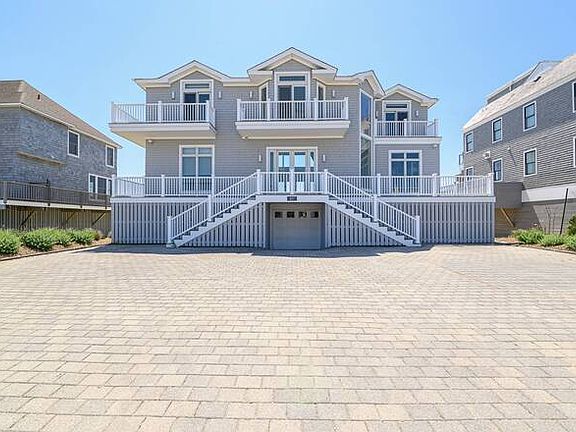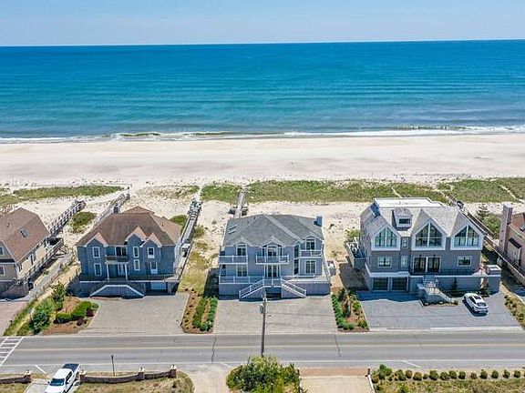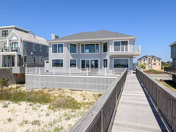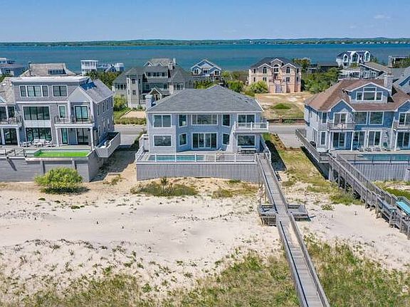 Renovated West Hampton Dunes oceanfront with pool. Enjoy panoramic ocean views in the newly and beautifully renovated oceanfront home in West Hampton Dunes with 5 bedrooms, 3 full and 2 half baths. Listen to the surf from your oceanfront pool and deck, or head down your private boardwalk to the shoreline. Enter the light-filled and spacious interiors with clean lines, a serene neutral palette of soft grays and white, and many large windows and glass doors presenting breathtaking views. Open first-floor living areas flow among the double-height living room with fireplace, central seating area, and eat-in kitchen with island seating, stainless steel appliances by Viking, and dining area. Two additional bedrooms sharing a full bath, a half bath and a laundry room are also on this level. A graceful staircase ascends to an ocean-view sitting area on the upper landing. The spacious primary suite with terrace is a peaceful sanctuary with a chic bath with skylight and double vanity. Two additional bedrooms share another full bath. Outdoors relax or dine on the new deck surrounding the heated pool, soak up some sun on the boardwalk banquettes, and gaze out across the dunes to the sea.