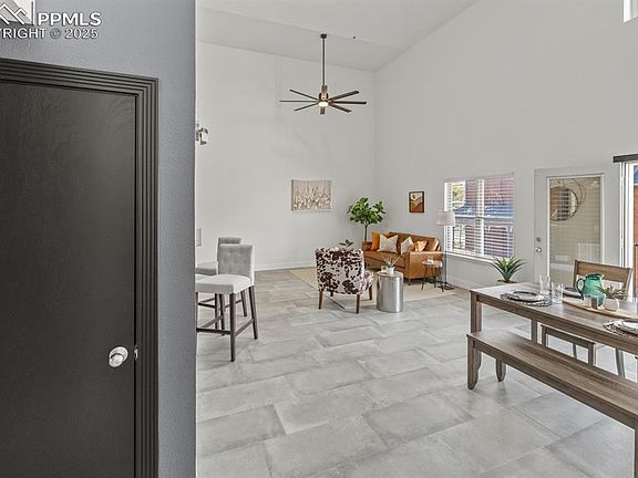 This striking residence in Denver’s Uptown neighborhood combines stylish design with outstanding proximity to dining, recreation, and cultural attractions. Vaulted ceilings and generous skylights brighten the open living area, showcasing sleek tile flooring and a dramatic accent wall that brings sophisticated energy to the space. The updated kitchen delivers both function and flair, with quartz countertops, mosaic tile backsplash, two-tone cabinetry, stainless-steel appliances, a passthrough opening—perfectly designed for everyday ease and entertaining. Upstairs, the spacious primary suite offers comfort and privacy with soft carpeting, double doors, a walk-in closet, and an en-suite bath featuring dual vanities and a tub/shower combination. A second bedroom with its own adjoining bath adds flexibility for visitors, remote work, or personal projects. Enjoy the outdoor balcony with peaceful views or take advantage of community features like the fitness center and green spaces. With two assigned parking spaces and convenient access to downtown, as well as nearby parks, cafés, boutique retailers, and landmarks like City Park and the Fillmore Auditorium, this residence puts the best of Denver within easy reach.