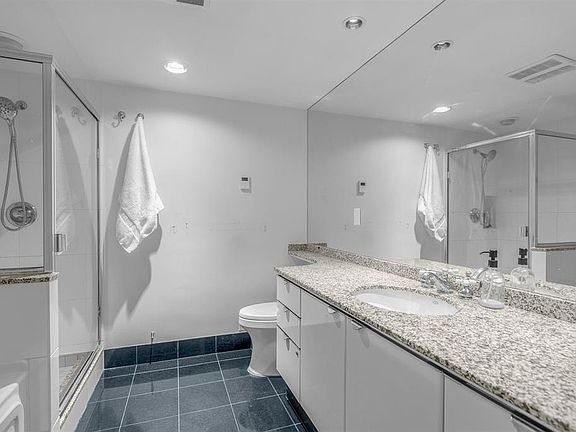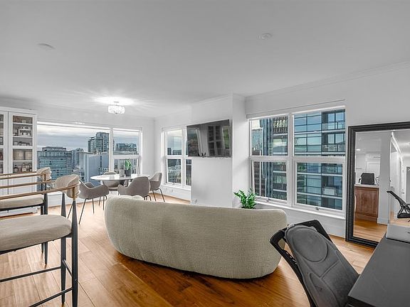 Experience refined living in this 1170 sq. ft. executive residence, fully renovated with custom upgrades that set it apart from standard units. From the moment you step inside, you're greeted with breathtaking panoramic views of the North Shore Mountains, Vancouver Harbour, and even Mount Baker.
