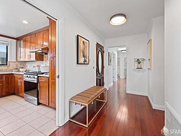 Introducing a meticulously renovated 5-bed, 2.5-bath Forest Extension Classic, this home exudes timeless sophistication. The main floor, redesigned for an open-concept living space with a fireplace, is bathed in natural light. The gourmet kitchen, boasting granite counters and ample storage, enhances its appeal with recessed lighting and tile flooring. Upstairs, three bedrooms feature organized closets, two offering serene backyard views in a layout reminiscent of its previous use as an Airbnb. Descending the stairs reveals two additional bedrooms and a full bath. The front bedroom, with an extended seating area, contrasts with the rear room, now a spacious family room with a wet bar. An enclosed sitting area extends the living space for gatherings or quiet retreats. Step outside to a low-maintenance backyard with a classic gazebo and pond-like flower bed, creating a serene oasis. The side-by-side garage, with built-in storage, laundry facilities, and an extra refrigerator, sits on a freshly painted floor. Opposite the esteemed San Brandon school, this residence offers swift access to Portola Drive, connecting to West Portal shopping, Noe, and Glen Park. Seamlessly blending sophistication with practicality, this property defines an ideal living experience.