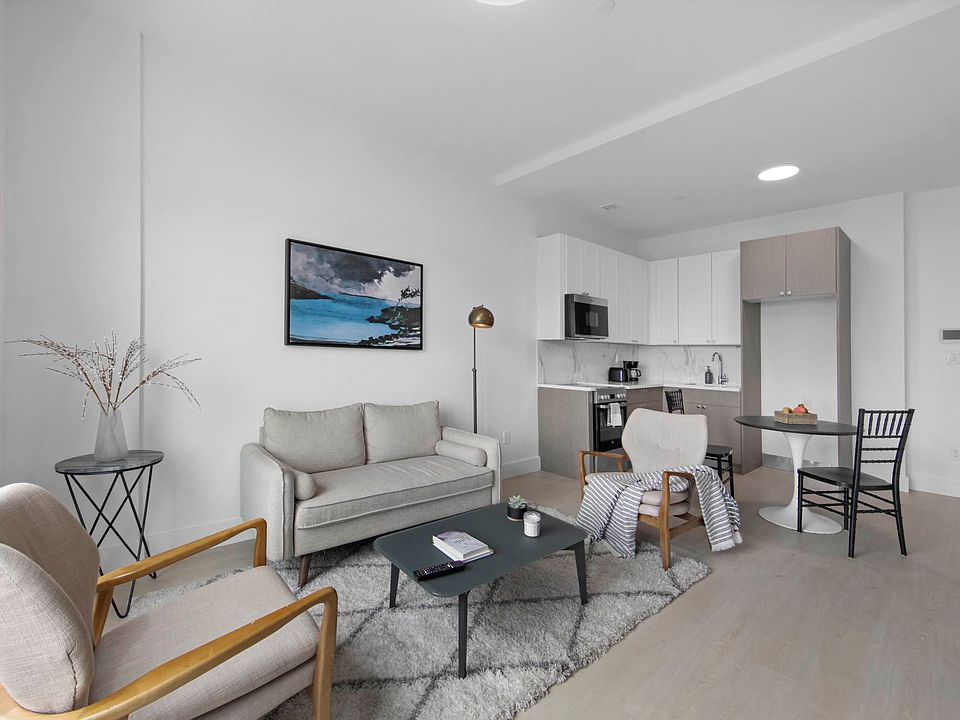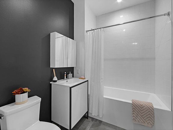 This two bedroom apartment was designed to optimize space with separate living, dining, and bedrooms that flow seamlessly together. The kitchen comes complete with top-of-the-line stainless steel appliances, ample counter space, and plenty of cabinets for storage. The bathroom is beautifully appointed, offering a spa-like experience at home, featuring a deep-soaking tub, modern and ambient lighting, and custom tiling throughout. Both bedrooms are commodious and can comfortably accommodate queen-sized beds + additional furnishings, and have well appointed closets. All units feature keyless entry, split AC/Heating units, modern fixtures, high ceilings, and advanced technology virtual intercom systems.