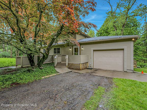 Enjoy the privacy of a lovely Farm House located on a 4 acre wooded lot with ferns and phlox in the side yard. Close to the heart of Clarks Summit and the Trolley Trail. Maintenance free Vinyl siding, Trex decking on front porch and a wood deck in the back off the Dining Room.Hardwood floors through-out. Wood burning fireplace in Living Room. First floor Kitchen with a kitchenette on the second floor. One car garage. Gas Water Heater and Furnance new in 2023.