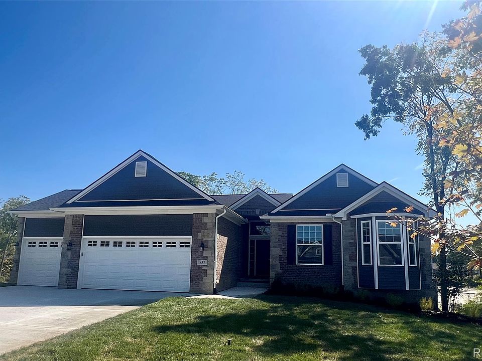 IMMEDIATE OCCUPANCY! GORGEOUS 1992 sq ft NEW CONSTRUCTION 3 BED RANCH with 3 CAR GARAGE, extra deep WALKOUT BASEMENT overlooking the quaint non-motor HIDDEN LAKE. WALLED LAKE SCHOOLS, Builder to include spacious DECK made out of composite material with stairs down to Concrete PATIO under deck, SOD & SPRINKLERS. 3 spacious bedrooms, 2.5 bath (jack n jill bath) dramatic stepped ceilings in multiple room, gorgeous linear fireplace with marble surround. Luxurious primary bath with 7x3 enclosed tile shower. Chef's dream kitchen with quality cabinet upgrades, quartz counters, 8' island, walk in pantry & views of the lake from every angle! This home has it all! Don't miss this incredible opportunity to own this unique home nestled in White Lake Twp, less than 10 minutes from M59, less than 15 minutes from M5 Corridor, minutes from shopping, dining & entertainment, lakes & golf courses. Sales Model open 12-5 daily .