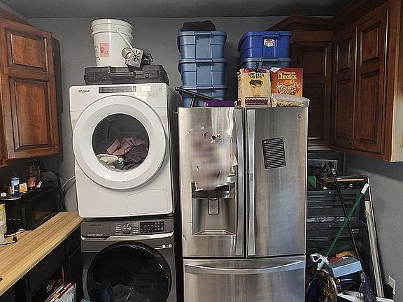 Has a stove, double door refrigerator, washer and dryer, etc.