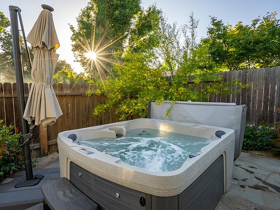 Downstairs, the home features a formal sitting and dining room, a casual family room with a large TV, a half bath, a fully outfitted kitchen with a gas range, a laundry room and a spacious and landscaped backyard with a pet relief area, an outdoor dining table, BBQ, sitting area and a hot tub. The home is ideal for traveling health professional or educators/administrators, those in between escrows, those doing home remodels or repairs or those newly relocating to our area, needing a bit more time to secure long term housing. The home is fully furnished with all utilities turned on and included in the monthly rent.