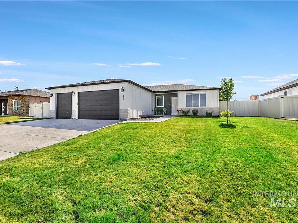 This like new 4-bedroom, 2-bath home was built in 2023 and offers modern living with a fresh, new feel. The open floor plan features LVP flooring throughout, providing durability and style. The kitchen is equipped with stainless, upgraded appliances, quartz counters, Enjoy the fully landscaped front and back lawns that include an automatic sprinkler system, making maintenance a breeze. The spacious, fully fenced, almost 1/4 acre lot, provides plenty of space in the backyard for kids, pets, toys, and more. This home includes everything you need to move right in! Don’t miss the chance to make this beautiful house your new home.