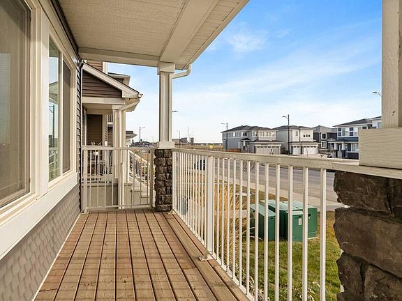 A pristine original-owner home in the heart of Chelsea, Chestermere - showcasing true pride of ownership and presenting as close to new as it gets. With nearly 1,650 sq. ft. of thoughtfully designed living space, this is the ideal family home offering 3 bedrooms, 2.5 bathrooms, a fully landscaped yard, a private double detached garage, and an undeveloped basement with rough-ins ready for your future vision. The open-concept main level is anchored by a stunning central kitchen, creating the perfect flow for both everyday living and entertaining. Finished with timeless light grey shaker cabinetry, an oversized quartz island, and a full suite of upgraded stainless-steel appliances, this kitchen is as functional as it is beautiful. A south-facing front great room is bathed in natural light through a wall of windows, while the expansive ~14' x 10' dining area at the rear comfortably accommodates any dining setup and overlooks the private backyard. A convenient powder room and large closets at both the front and back entrances complete the main level. On the upper level, the impressive ~14' x 12' primary suite easily fits a king-sized bed and additional furniture. It’s complete with a luxurious 5-piece ensuite featuring dual sinks, a soaker tub, a walk-in shower, and a generous walk-in closet with space for two. Two comfortable secondary bedrooms sit at the opposite end of the home, separated by a large main bathroom and an upper-level laundry room - an ideal layout for privacy and practicality. Outside, the property is fully landscaped, fenced, and completely move-in ready - saving you the time and cost typically associated with new construction. Enjoy multiple outdoor living spaces, including a charming full-width covered front porch to capture the south sun, and a large rear deck with gas line and pergola overlooking the private yard. The double detached garage provides secure parking and extra storage year-round - an especially appreciated benefit during the winter. Perfectly positioned within walking distance to parks, schools, and local amenities, while still only a quick drive to Calgary, this home delivers convenience, comfort, and exceptional value in the vibrant community of Chelsea in Chestermere. A truly move-in-ready home that combines thoughtful design, modern finishes, and unbeatable location - this is one you won’t want to miss.