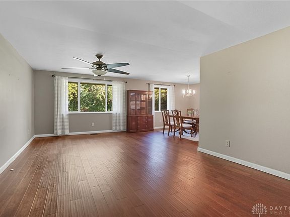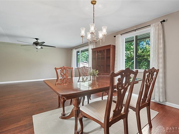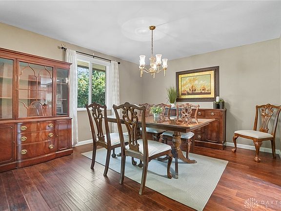 Spacious and inviting tri-level located in the highly sought-after Centerville School District! This 4-bedroom, 3.5-bath home offers comfortable living and modern updates throughout, including brand-new flooring. The main level features a welcoming family room with a wood-burning fireplace, a convenient half bath, and a laundry room with washer and dryer included. The kitchen comes equipped with all appliances—stove, refrigerator, dishwasher, and microwave—and opens to a bright living and dining area, ideal for entertaining. Upstairs, you’ll find four well-sized bedrooms, including a primary suite with a private bath and generous closet space. The finished lower level expands your living options with a spacious recreation area, home office nook, and additional half bath. A window in the lower level could easily be converted into a walkout, offering natural light and flexibility for a guest suite or in-law setup. Step outside to your covered patio featuring a built-in heating oven—perfect for enjoying outdoor living and dining in every season. Completing this home is a two-car attached garage with extra storage. Conveniently situated near Cox Arboretum and other parks and major highways—this move-in-ready home offers the perfect blend of comfort, convenience, and charm.