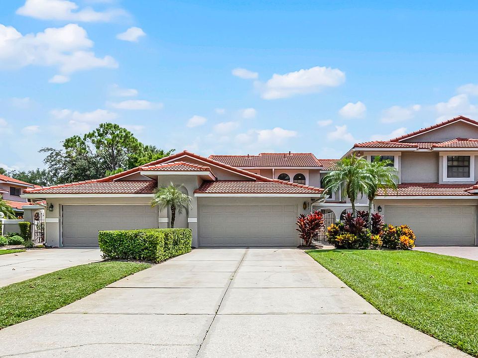Ceramic tile and carpet throughout. The kitchen boasts lots of cabinet space and a breakfast nook. Just off the kitchen, you'll find access to the two-car garage. Moving on from the kitchen you have an open living/dining combo filled with natural light from your two sets of sliding glass doors. These doors lead to your fabulous screened in porch! The primary bedroom is located on the first floor. The room also features a free standing soaker tub to unwind in after a long day, dual vanities, a large step in shower and a walk-in closet. On the second floor you'll also find two large guest bedrooms with bifold closets and a guest bathroom with a step-in shower. This is a gated community featuring a pool, clubhouse and a fitness center!