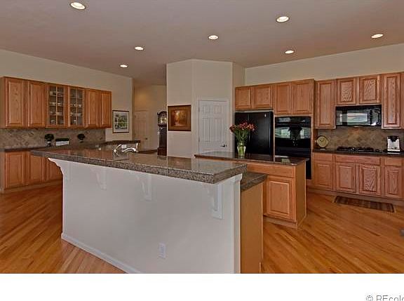 Beautiful Ranch*.22 acres*On Open area*Ryland Chablis model*10??? ceilings*Kitchen: a cooks kitchen, center island, 5 burner gas stove top, refrigerator, custom cabinetry, granite counters, back splash, double oven, convection, microwave, walk-in pantry, eat in area with bay window*Family room: full wall of windows, mountain views, entertainment center, gas log fireplace*Dining room area has many uses, views*Master Bedroom: larger windows, shutters, Pike National Forest views, 10??? ceilings, large walk-in closet, 5p jetted soaking tub*Third bedroom has double doors, closet area, can be used as an office*Wood flooring, most of main level*Laundry room, mud room*3 car Garage is 30??? 28???*Basement has 6 conforming windows, 9??? ceilings*OUTSIDE; enjoy the back yard all day long with a remote controlled awning that covers most of the 22??? x 18??? TREX deck, large backyard, 28??? x 18??? stamped concrete patio, outstanding views of the Pike National Forest*Covered front porch is 24??? x 8???!!!!!!