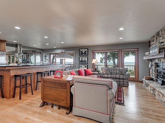 Some of the most amazing views in all of Door County could be yours. Perched above Whitecliff Rd for sweeping panoramic westerly views of sunsets, Chambers, Hat, & Green Islands, and the lights of Michigan. This spacious home is designed to be practical and cozy for two while providing space for many family and friends to visit. Gorgeous newly renovated kitchen is in the center of the home making it ideal for entertaining. Guest rooms are positioned far from the master or even better, put them out in the adorable two bed cabin (790 sf). Remodel & additions in 05 & 13. Maple & tile floors throughout, Cambria counter tops in the gourmet kitchen, & finished lower level (with water views). Home Warranty included.