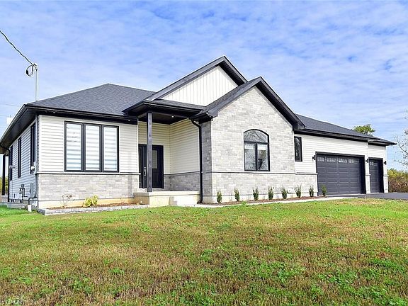 Welcome to 8373 Silver Street, Caistor Centre. Discover this newly built 2,500 sq. ft. bungalow situated on a picturesque 4.39-acre lot in the heart of Caistor Centre. This stunning home offers a seamless blend of modern design and country charm, featuring 4 spacious bedrooms and 3 bathrooms. The open-concept kitchen, dining, living area is ideal for entertaining, complete with hardwood floors throughout and a fully custom Barzotti kitchen and vanities. Step outside and enjoy the newly landscaped grounds, offering plenty of space for outdoor living and farming. There is a second dwelling on the property, please speak with agent for details. The unfinished basement was thoughtfully designed with a separate walk-up entrance, providing the potential for an in-law suite. Seller is willing to complete this space, please speak with agent for details . Additional highlights include a top-of-the-line water filtration system, high-end finishes throughout and security system. This property offers luxury, privacy, and endless potential - a perfect place to call home.