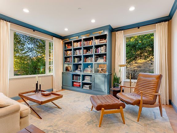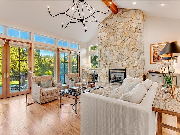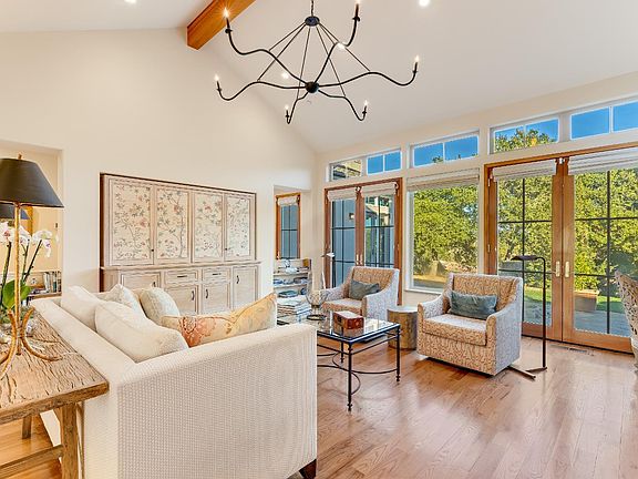 Poised on prime Sonoma County countryside 8373 Singing Hills Trl is the pinnacle of serenity and elegance. Originally part of Otto and Hansel (Mieth) Hagel's historic ranch, this estate offers panoramic views, walking trails, a tranquil pond stocked with fish, and a versatile two story barn perfect for creative pursuits or a possible event venue.The custom 4200 sqft residence exudes warmth and sophistication with oak floors, vaulted ceiling light filled interiors and grand stone fireplaces- all creating a timeless welcoming ambiance. Custom French doors in the living room open to a flagstone patio with a built-in wet bar and soothing fountain. A chic library/study with custom built-ins and woodland views provides a quiet retreat.Designed for entertaining, the chef's kitchen includes double ovens, a gas island cooktop, dual pantries and a charming breakfast nook. The main level primary suite is a true retreat, featuring a grand stone fireplace, sitting area, spa inspired bath, walk-in closet and private patio access. A breezeway leads to a three car garage and ADU/studio above-ideal for guests or a personal sanctuary. Located minutes from vibrant towns, this estate offers a rare combination of serene privacy and effortless daily living.