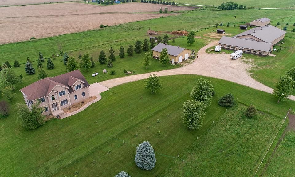 An incredible Horse Lovers Paradise! A beautiful 2 story home with 40 acres of wide open spaces and pastures, an indoor arena with 8 box stalls and an office as well as a huge pole shed/shop and outdoor kennel building. This gorgeous home features an oversized master suite and 2 additional bedrooms, 3 baths, hardwood floors and a stone fireplace. The lower level boasts new mechanicals and is ready for a future family room, bedroom and bath if needed. All of this is within minutes to Stewartville and Rochester and on paved roads the whole way! Enjoy the privacy of rural living or embrace the opportunity to run a boarding business for dogs or horses if you want. The options are endless and all yours!