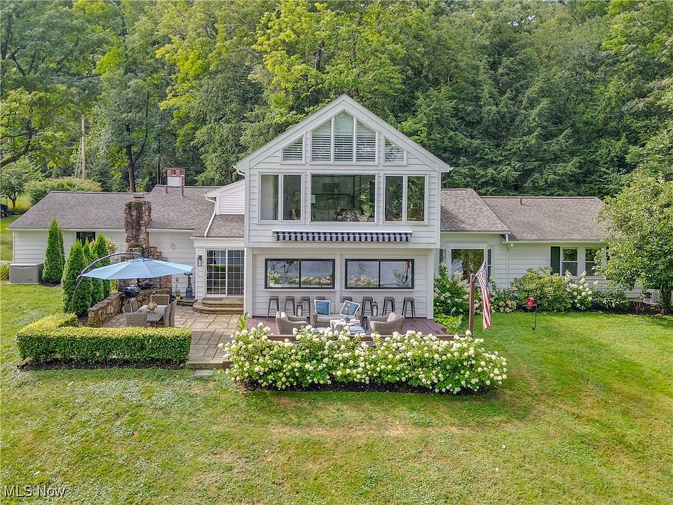 One-of-a-kind property in a sought-after lake community near Chagrin Falls. This totally updated historic cottage was built in 1947 on arguably the best waterfront lot on Lake Lucerne. The backyard’s rolling lawn extends all the way down to the private dock & water's edge (no stairs) directly across from the stunning beach. While every inch of this property—from the outside in—has been updated w/ the highest quality, it's the location that sets it apart. Entertain from the deck with new retractable awning or dine on the stone terrace in front of the outdoor fireplace. Step inside and you won't believe your eyes! The kitchen is a showstopper with custom cabinetry below large windows that push out to create an indoor/outdoor countertop on the deck. There is a full suite of appliances including professional range & thoughtful extras like a beverage fridge & icemaker. The breakfast nook features a stylish banquette adjacent to the jewel-box of a living room with window seat & fireplace. Down a private hallway are 2 bedrooms and a gorgeous full bath w/ a stall shower & stand-alone tub. The charming, wood-beamed dining room with inglenook fireplace dates from the original cottage and completes the first floor. The 2nd floor boasts the most incredible primary suite with vaulted ceiling & panoramic views of the lake. Custom plantation shutters and automated blinds mean you don’t have to get out of bed to access the stunning view! There are 2 completely renovated 2nd-floor baths: (his and hers) one w/ dual vanities and jacuzzi tub; the other has a Carrera marble tile shower. A 4th bedroom with the original wormy chestnut wood paneling could be an office or dressing room. Life in Lake Lucerne is as if you are living in a private metropark with its natural beauty and a beach, tennis/pickleball courts, volleyball, fishing and water sports. You can move in now and live the dream. Act now, these properties are rarely available and the lifestyle cannot be replicated.