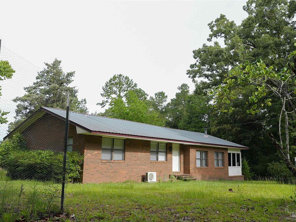 This charming 3 bed, 2 bath 1,210 square foot home is located on a little over an acre of land near the edge of the Conecuh National Forest (about 2 miles away). Fruiting blueberry bushes, a couple of young apple, pomegranate, and peach trees are sprinkled throughout the front yard. A black walnut tree produces walnuts during appropriate season. Inside the home, the open-concept kitchen/dining and living areas have a cozy cabin feel with wood paneling lining much of the walls and countertops. Spacious laundry room/pantry right off of the dinning area. Forced-fan woodstove heater in living room. Sunroom offers a great view of nature, like deer that often walk through the front yard during the evenings. Both bathrooms have been renovated as of June 2024. New blinds and curtains throughout. Metal roof. All kitchen appliances and both the washer and dryer convey with sale. Internet access available. The two car carport connects to side of the workshop/garage. The workshop has a max ceiling height of about 15 feet, is on a cement slab, and includes a possible welder's exhaust. Home is still undergoing touch-ups such as: painting, trim, finishing up the flooring, etc. Seller also plans to put in a stainless steel kitchen sink. Contact me today to schedule your private viewing or make an offer on this unique property!