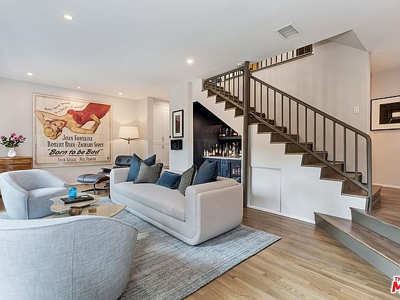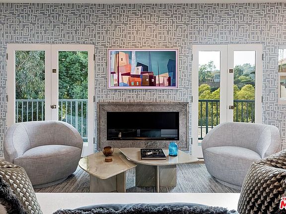 Just a five-minute drive north of Sunset Boulevard, 8374 Yucca Trail offers the perfect fusion of a luxurious Hollywood Hills residence and the natural beauty of historic Laurel Canyon. Set on a quiet, hidden hillside road amidst tall trees and natural greenery, this 4-bedroom, 4-bathroom home is secured by two gates and high walls, providing privacy and exclusivity. Its expansive three-car garage complete with Tesla charger, is complemented by a wide driveway that accommodates an additional four vehicles, a rare convenience in the Hollywood Hills. After a complete kitchen renovation with top-of-the-line Thermador appliances and striking white marble countertops, the property underwent a full interior and exterior makeover in 2023-2024. Updates include new interior doors, refinished white oak flooring, and glass French doors that open to balconies overlooking the surrounding landscape. The home is also equipped with a central sound system, with ceiling speakers in every room. The first floor is designed as a versatile den, office or screening room with a private entrance. A custom wall of shelves from Resource Furniture cleverly swivels to reveal a Murphy Bed, transforming the space into a guest room complete with its own full bathroom. The Living Room and Primary Bedroom feature the latest EcoSmart bio-ethanol fireplaces, which require no chimney, flue, or gas line. A new bar area complete with wine refrigerator and separate beverage fridge is nestled beneath the staircase that leads to the upper floor. The Primary Bedroom is highlighted by a dramatic 13-foot domed ceiling and a spacious walk-in closet. The en-suite bathroom features a luxurious jacuzzi tub and a separate rain shower. The home also boasts a new "torch-down" roof with a 20-year warranty, ensuring peace of mind for years to come. Completing the property is a recently re-tiled swimming pool with a waterfall feature and a relaxing spa, creating an ideal space for outdoor entertaining.