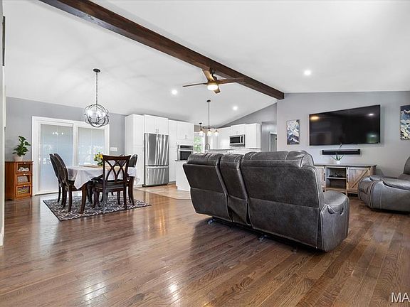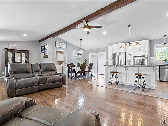 Sophisticated Interior & Chef's Kitchen: Step inside to a main level defined by stunning, consistent updates. The LR features beautiful hardwood flooring, setting a warm, welcoming tone. Throughout the main floor, enjoy the durability and style of luxury vinyl flooring and updated windows. Efficiency is key, with all light fixtures upgraded to modern, efficient lighting and ceiling fans installed in most major rooms. The showstopper kitchen has been fully renovated for the modern chef. It boasts elegant granite countertops, a beautiful backsplash, and a functional island w/ bar, perfect for meal prep and entertaining. Stainless steel appliances and soft-close Waypoint cabinets complete the sophisticated look. Efficient LED lighting adds a final touch of brilliance and efficiency. The renovated main floor includes luxury vinyl flooring, newer baseboards, utility sink, and custom cabinetry and closet organizer, and leads directly to the garage for ultimate convenience.