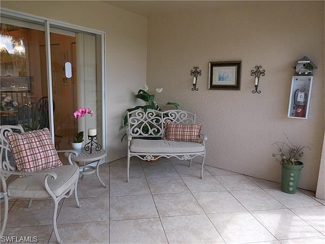 Fantastic view and move in ready describes this 2 bed 2 bath plus a den and garage second floor veranda located in highly desired Heritage Links area. Featuring 1414 sq. ft. of air conditioned space plus 2 tiled screened lanais, watch the birds or just relax with a view across the lake to the fairway and green of hole # 10. Tile on the diagonal throughout the main living area, new hurricane windows, electric storm shutters, newer a/c and water heater, newer dishwasher and microwave add a feeling of comfort to this turnkey furnished unit. Add to this a built in dry bar and cathedral ceilings and located in beautiful Naples Heritage, situated on 550 acres with bundled golf on a newly refurbished championship course. Whether it be golf, tennis, swimming, bocce, pickle ball, fitness or just enjoying fine dining or casual outdoor dining, it is all here, waiting for you. Only minutes to downtown and the beaches, a lifestyle you will love begins at Naples Heritage and lasts forever!!