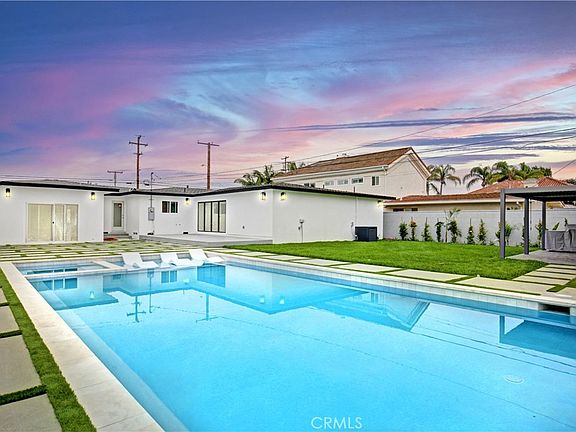 New remodeled contemporary home in North Downey features 3 bedrooms, 3 bathrooms, a bonus room, and a brand new pool & spa on a large 11,000+ sq ft lot with a circular driveway. The home was added onto and essentially taken down to the studs with a new iron front door, an open-concept formal living room and dining room infused with natural light, brand new custom built kitchen with large island and new GE Monogram appliances, family room with fireplace, spacious hall bathroom with dual sinks & large walk-in shower, and a primary bathroom with similar features plus a separate soaking tub and an oversized steam shower with dual shower heads. No expense was spared with custom floating cabinetry, top-of-the-line lighting and electrical outlets, luxurious porcelain counters, and the finest finishes money can buy. The primary bedroom has the largest custom closet you've ever seen -- a must see. The backyard features a wood deck off the family room leading to a concrete slab with artificial grass dividers, a large grass area, an oasis-like heated pool & spa with baja shelf & bench, and a new covered patio with a new combination BBQ grill, sink, outdoor frig & oven for hosting family and friends. So many new features such as new central air & heat, new tankless water heater, new roof, new doors, sliders and gates, new windows, new lush landscaping and sprinklers, and new exterior siding & stucco. The home is walking distance to Gallatin Elementary, near the 5 freeway, and close to Downey's best shopping, restaurants/bars and attractions.