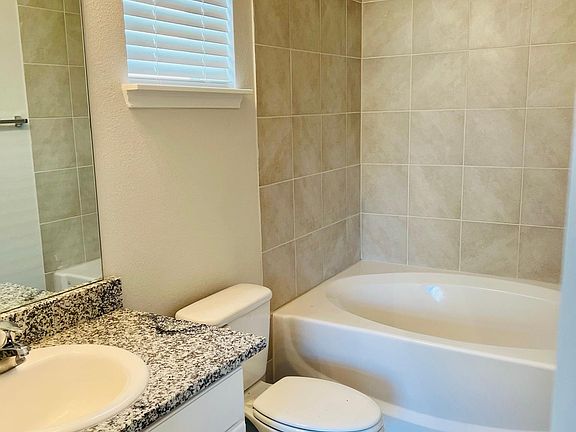 CORNER LOT * Two Story 4 BRs, 2.5 bath in new Sycamore Landing Community* Open kitchen plan with granite counter-top, stainless steel appliances* Master bedroom is down and features lovely windows, exquisite bath with vanity, garden tub and large walk in closet* Other bedrooms are all upstairs and spacious* Other features include a covered patio, 2 car garage, wood-grain vinyl plank flooring, carpets in the bedrooms, nice patio, large fenced backyard, and a sprinkler system * Ready for move in!! Refrigerator, Washer and Dryer are not provided. Tenants pay for all utilities and take care of front & backyard lawn. Refrigerator, Washer & Dryer not provided. No smoking inside & outside the home. No aggressive breeds.