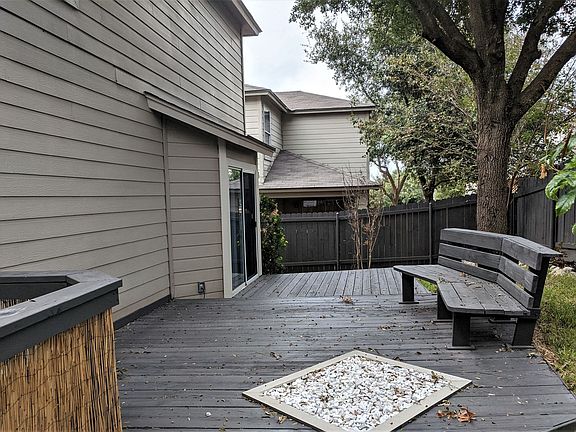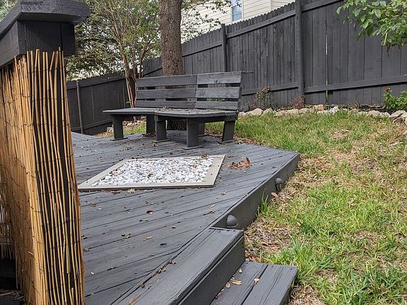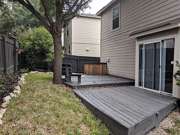 Landscape design in backyardPark benchKitchen spaceMature treesCeiling fans in bedroomsOversized decking