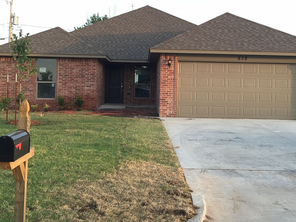 New construction home, hardwood look tile throughout home. Granite in kitchen and baths. Stainless appliances with gas range.