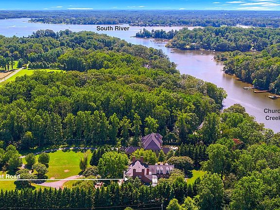 Premier custom designed Southern Living style waterfront residence provides privacy within an elegant setting. Two offices, 5 bedrooms, 6 full baths, two half baths, 2 laundry rooms, and an oversized 3-car garage. Private pier with multiple slips, two boat lifts, 10+ feet of depth, 138 feet of shoreline on the protected waters of Church Creek located just off the South River. Watch the sunrise from the bluestone covered front porch, and entertain family & guest in the rear courtyard, featuring a heated pool, outdoor fireplace, built-in grilling station and ample space for hosting events. Three finished levels above grade with 6,700 sq. Ft. of finished space, plus a 2,700 sq.Ft. unfinished basement that includes a full bath rough-in, and wood burning fireplace. Timeless, impeccably well thought-out details, and built with only the finest materials.