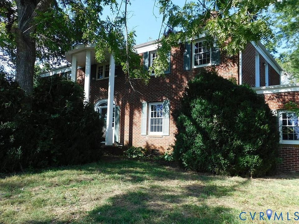 Gorgeous colonial two-story brick home - 45 acres bordering the N. Meherrin River. You’ll want to call this one home for sure! Home has 2600 sq feet and every room is more than spacious. The floor plan makes for a wonderful flow. 4 bedrooms on second floor, Other 1st. floor room could be a den, craft room, office, or 5th bedroom. Formal Living room has hardwood flooring, formal dining room has crystal chandelier and hardwood floors. Home was newly painted. Kitchen is huge 35’ x 12’7” with new cabinets and new vinyl flooring, new carpet in all bedrooms and stairs. Three baths were gutted and redone in 2024. Brick fireplaces in living & dining room. Grand foyer with crystal chandelier and leaded glass in front door and hardwood floor. New vinyl railings on back door steps. Attached garage. Generac generator and so much more. 4 stall horse barn and multiple storage/ outbuildings. Home is being sold "as is where is". Inspections and tests are for sellers info only & will be paid by buyer. As far as seller knows, everything was in working order when the parents past away. The water is cut off at the well. Seller feels sure Generator will need maintenance, it has been sitting.