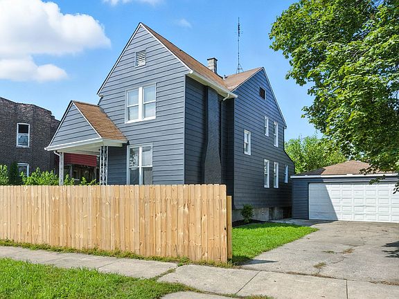 Welcome to this fully rehabbed 4-bedroom, 2-bathroom home that perfectly blends timeless style with modern convenience. Step into a spacious layout featuring a separate living room and dining room-ideal for gatherings and entertaining. The oversized living room offers abundant natural light and plenty of space for family and guests. The newly remodeled kitchen is a true showstopper, showcasing brand-new stainless steel appliances: Whirlpool refrigerator, LG dishwasher and microwave, GE oven, with stylish dark green cabinetry, and elegant finishes. Throughout the home, you'll find charming parquet floors and fresh interior and exterior paint that provide a crisp, clean look. Each of the four bedrooms is generously sized with ample closet space. On the main floor, enjoy a flex room that can easily serve as a sunroom, in-home office, or creative space. Both bathrooms feature modern walk-in showers and updated fixtures. The full basement offers endless possibilities-transform it into an additional bedroom, entertainment center, gym, or more. You'll also appreciate the brand new Samsung stacked washer and dryer for added convenience. Modern amenities include gas-forced air heating and central air conditioning. Outside, enjoy a private, fenced-in yard with a lush front lawn perfect for outdoor relaxation or gardening. A detached two-car garage and additional driveway parking offer plenty of space for vehicles. This move-in-ready home offers security, space, and style-don't miss your opportunity to make it yours!