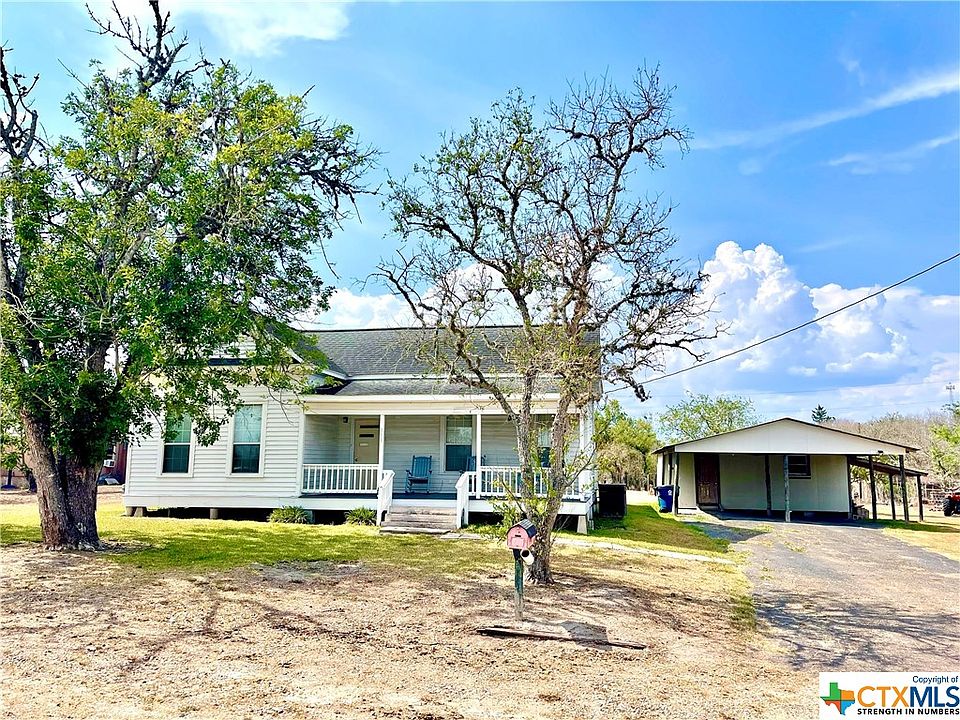 Come take a look at this home conveniently located near downtown Goliad on over 1/2 acre lot. This 4 bedroom home is perfect for large family gatherings with original wood floors and high ceilings. Outside is an oversized workshop with carport and plenty of room for a garden. Covered front porch is perfect for enjoying your evenings relaxing on the front porch swing!
